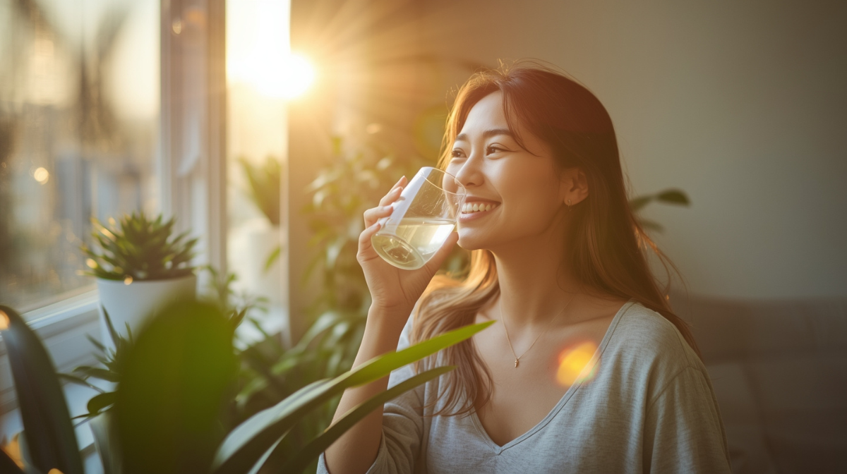 “Awali pagi dengan segelas air putih — langkah kecil untuk imun yang kuat sepanjang hari.”